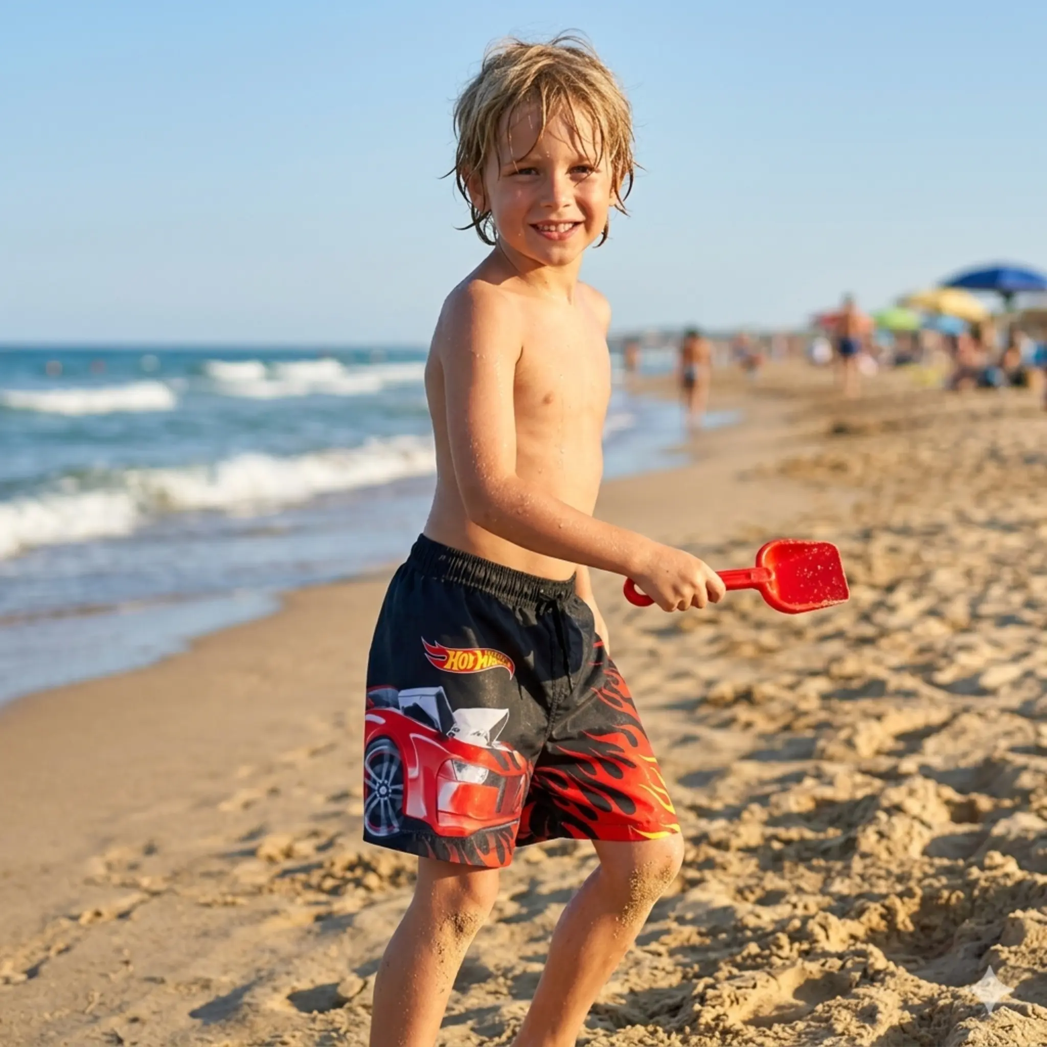 Het opvallende Hot Wheels design met stoere auto en vlammen maakt deze zwembroek een echte favoriet voor jonge fans.