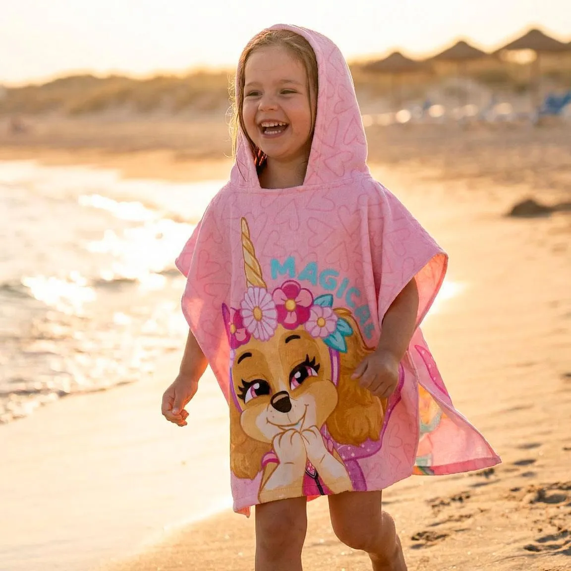 Maak elk strand- of zwembadmoment extra leuk met deze schattige Paw Patrol poncho met Skye en Everest. Deze kinderponcho is speciaal ontworpen om je kind snel warm en droog te houden na het zwemmen, terwijl het tegelijkertijd geniet van een vrolijk en herkenbaar design.